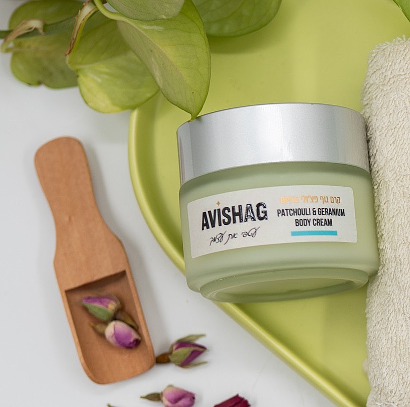 קרם גוף טבעי פטשולי גרניום חוה זינגבוים מוצרים - אבישג קוסמטיקה